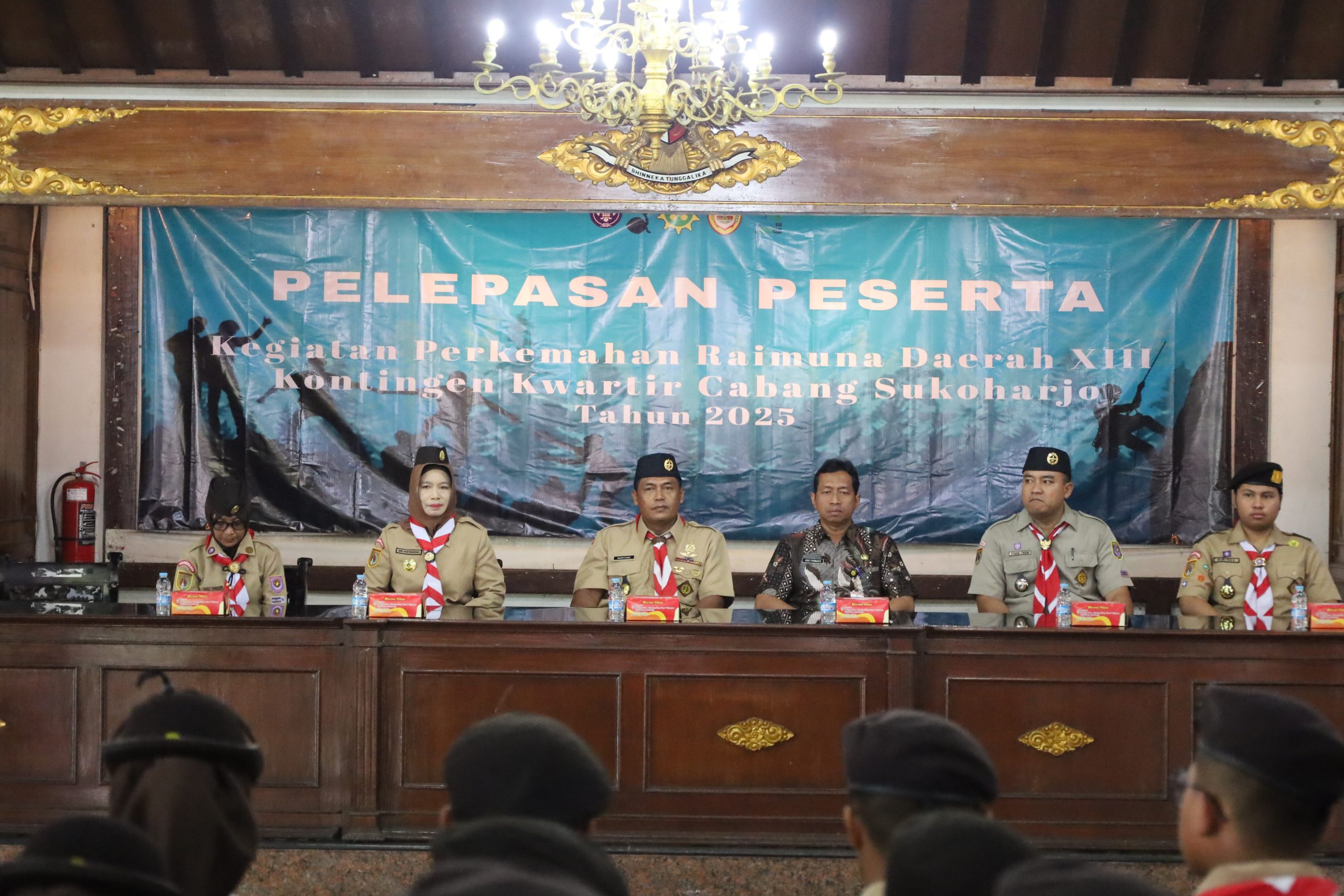 Pelepasan dilakukan oleh jajaran pimpinan Kwarcab Sukoharjo, yang diwakili oleh Wakil Ketua Bidang Pembinaan Anggota Muda, Kakak Pelda Mariyono. Beliau didampingi oleh Sekretaris Kwartir Cabang Sukoharjo, Kakak Joko Purwanto, S.Sos., M.Si., serta Wakil Ketua Bidang Pembinaan Anggota Dewasa, Kakak Sri Soewarsih, S.Pd., M.Pd.